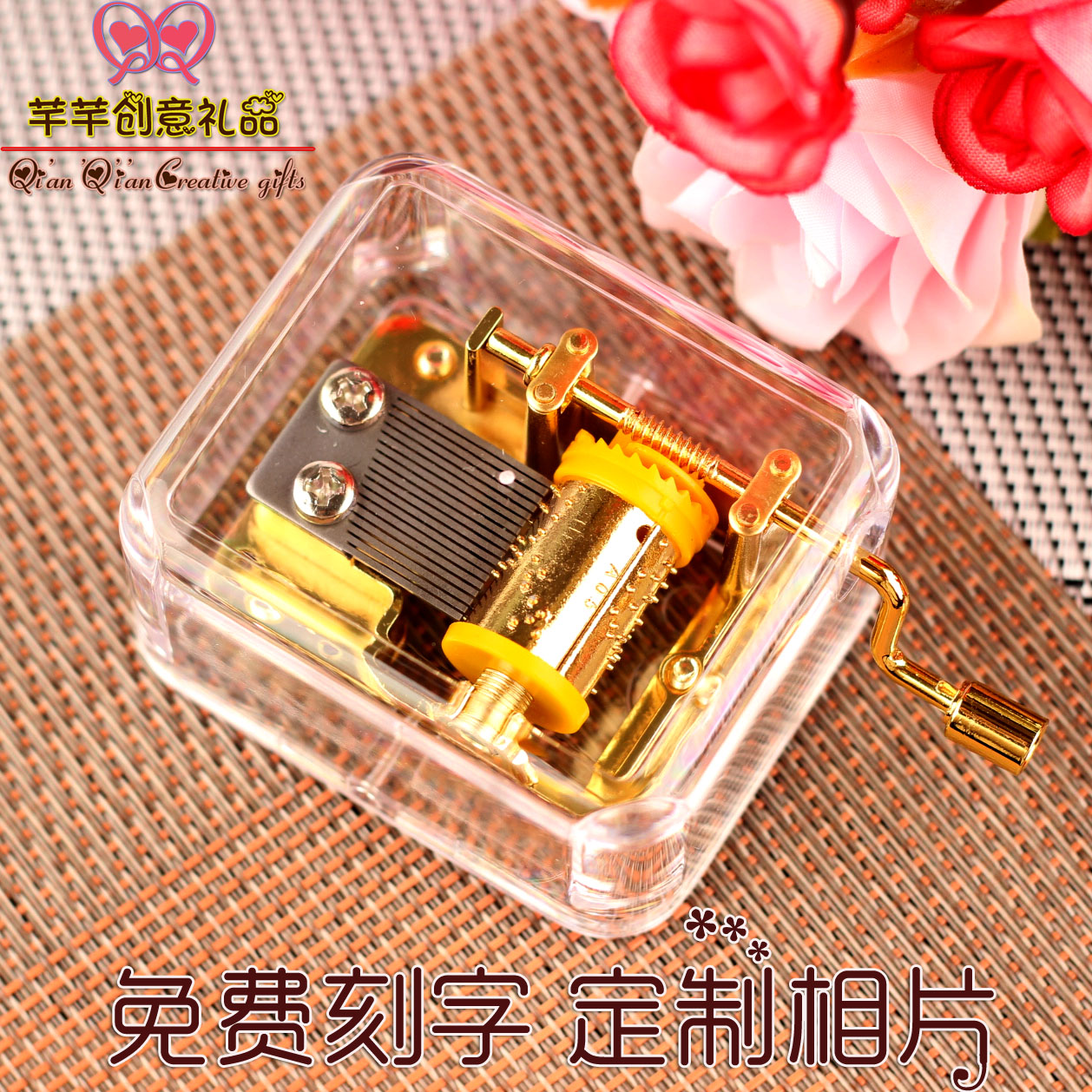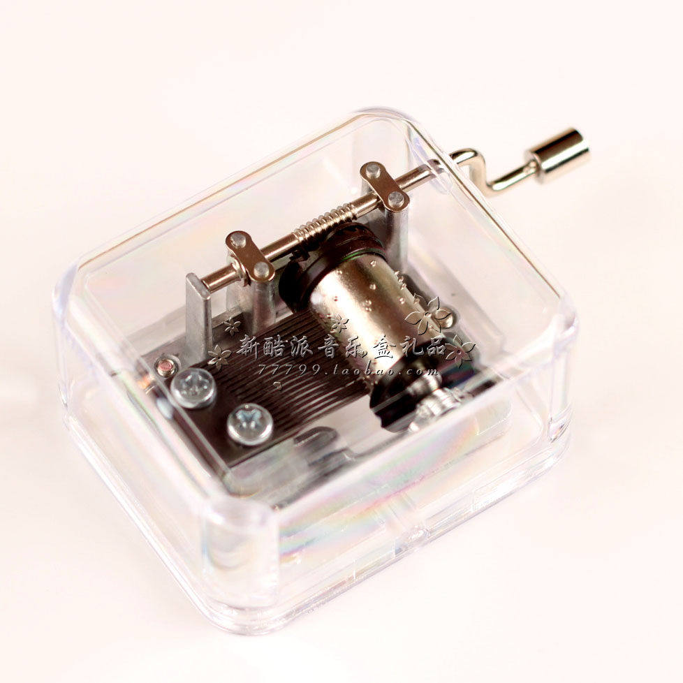 Transparent hand gold-plated silver-plated movement music box clockwork square round music box for men and women birthday love children