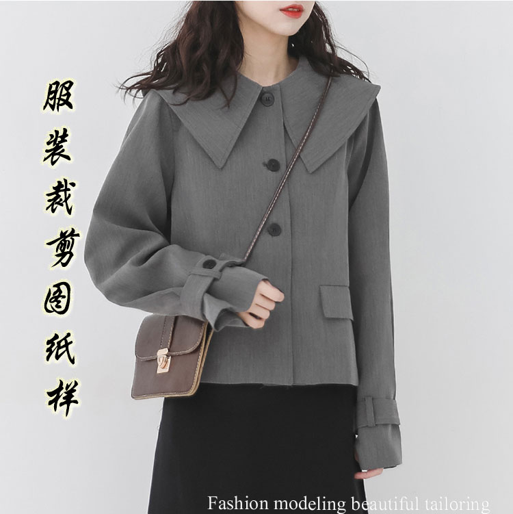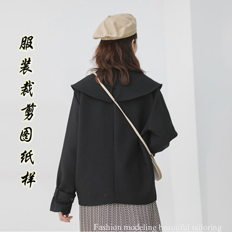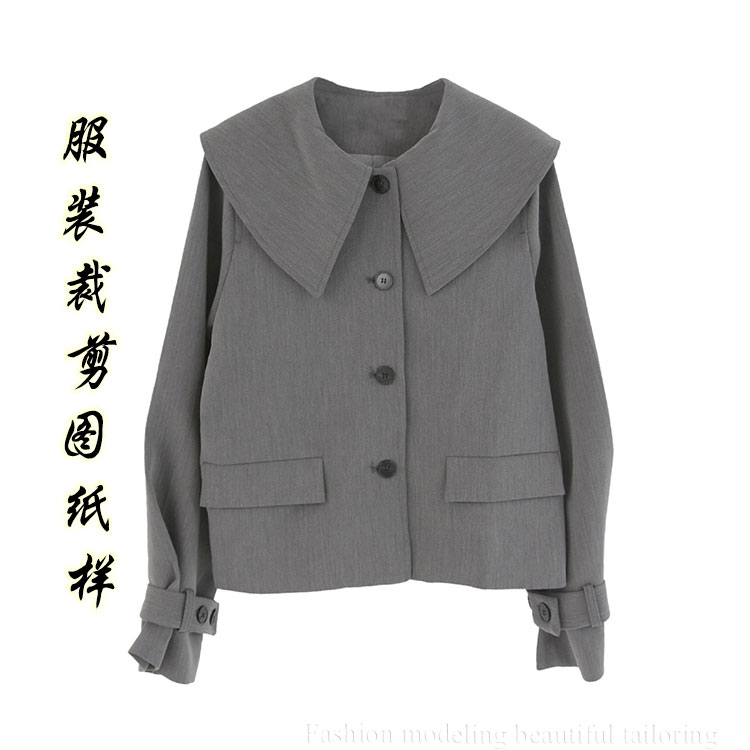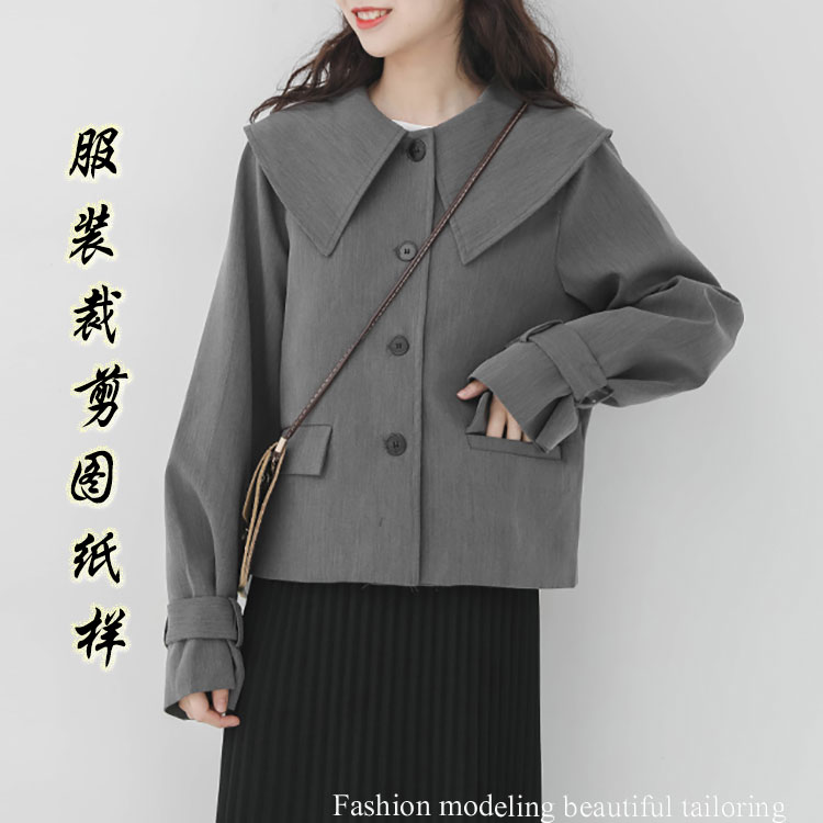 Loose large lapel short windbreaker pattern 2023 spring and autumn outerwear new women's top sample cutting diagram