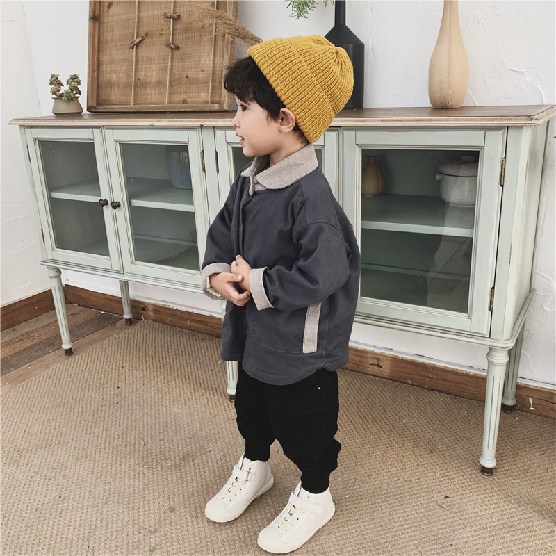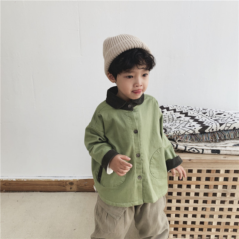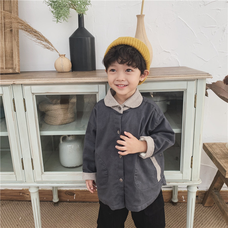 Boy's new winter dress 2020 baby coloured collar plus shirt children's cordulent thicker shirt