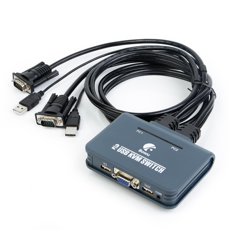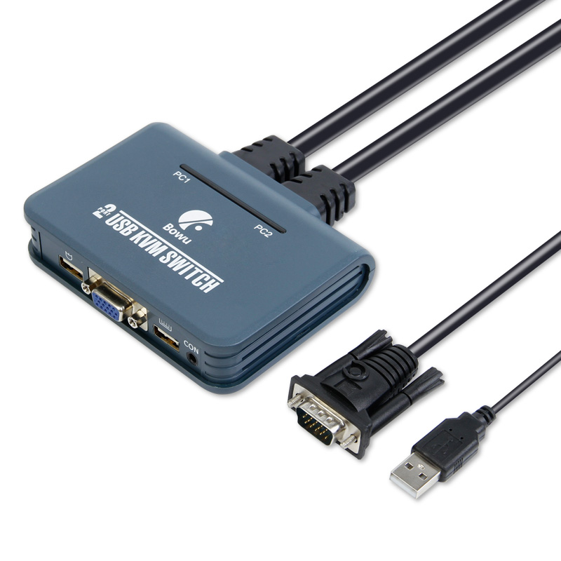 BOWU 2-mouth VGA KVM switcher with line 2 in 1 out VGA switcher 2 into 1 out 2 hosts monitoring hard disc recorders share a display set of keyboard slimpers