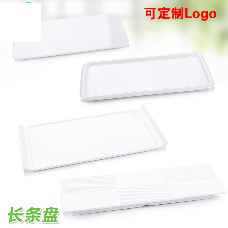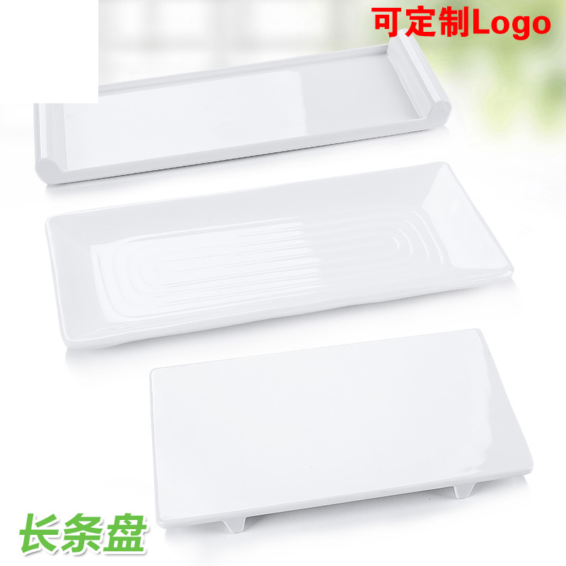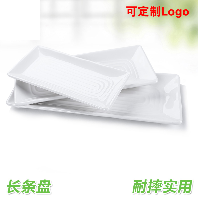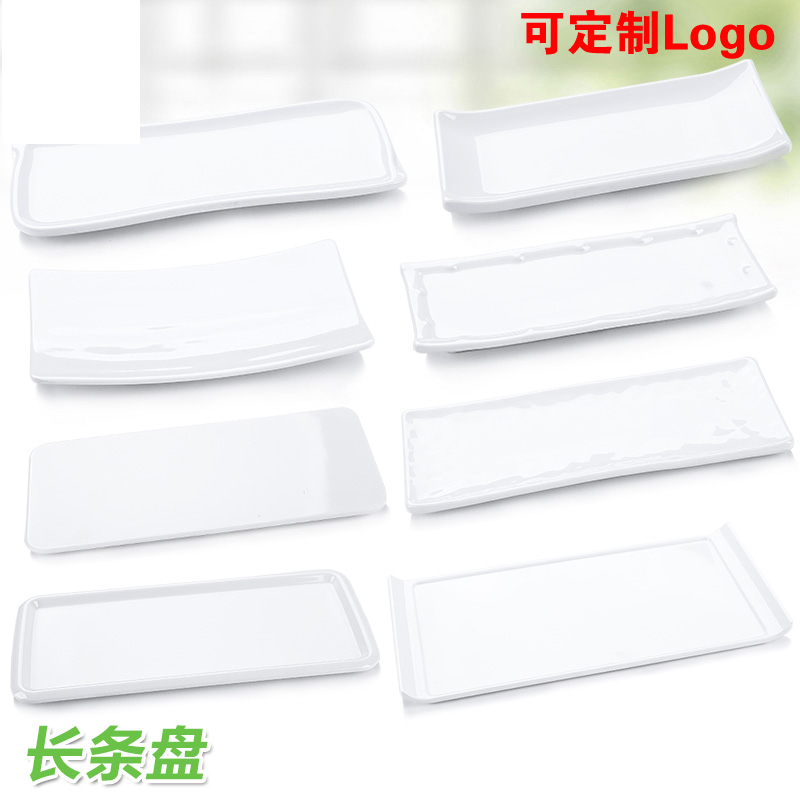 A5 White Melamine Cutlery Rectangular Flat Pan Subimitation Porcelain Strip Sashimi Sushi Barbecue Flat Plastic Cake Tray