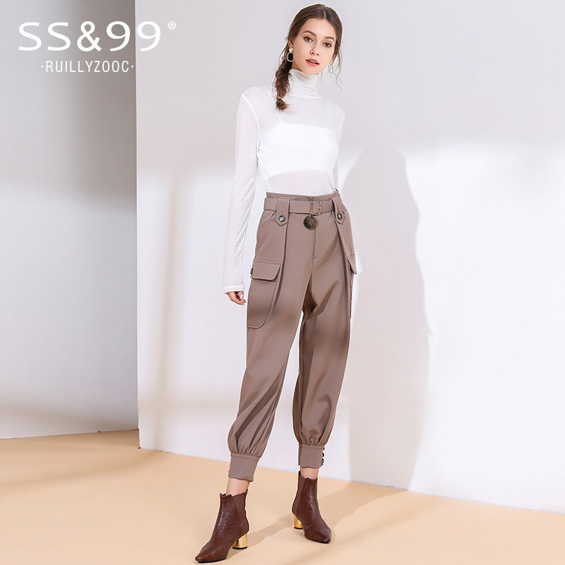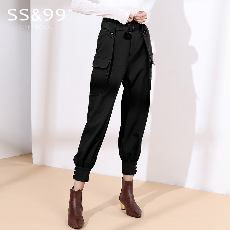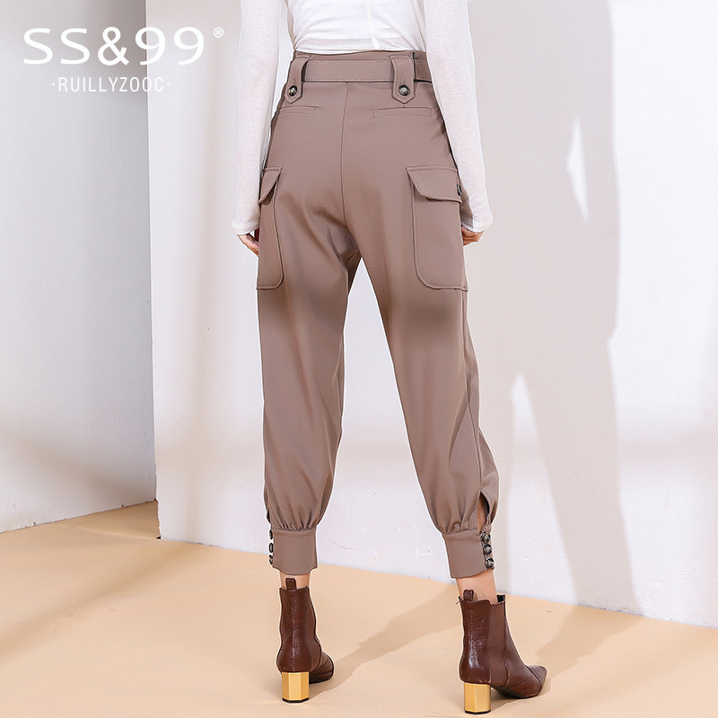 Pants children 2022 new European stock Spring autumn loose 100 hitch fitted pants bunches of pants with large pockets slim and high waist casual