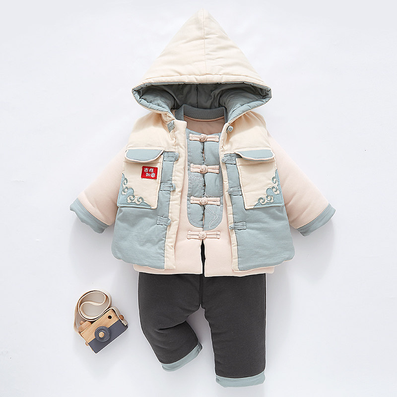 Baby Cotton Coat Jacket Spring Autumn Winter Cotton Padded Jacket Newborn Toddler Clothes Three Sets Children Dress Warm Baby Spring Clothing
