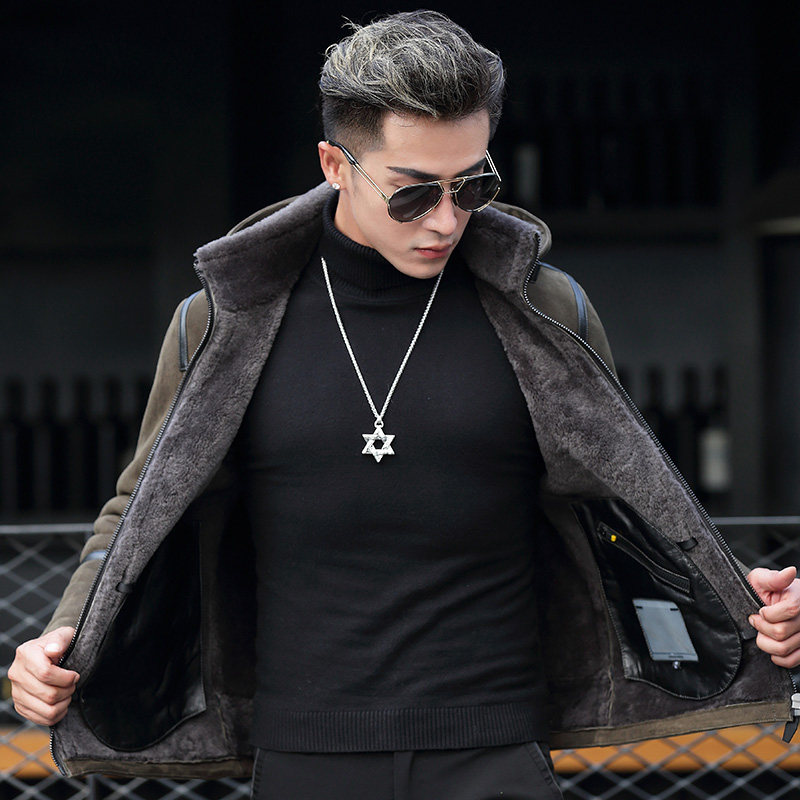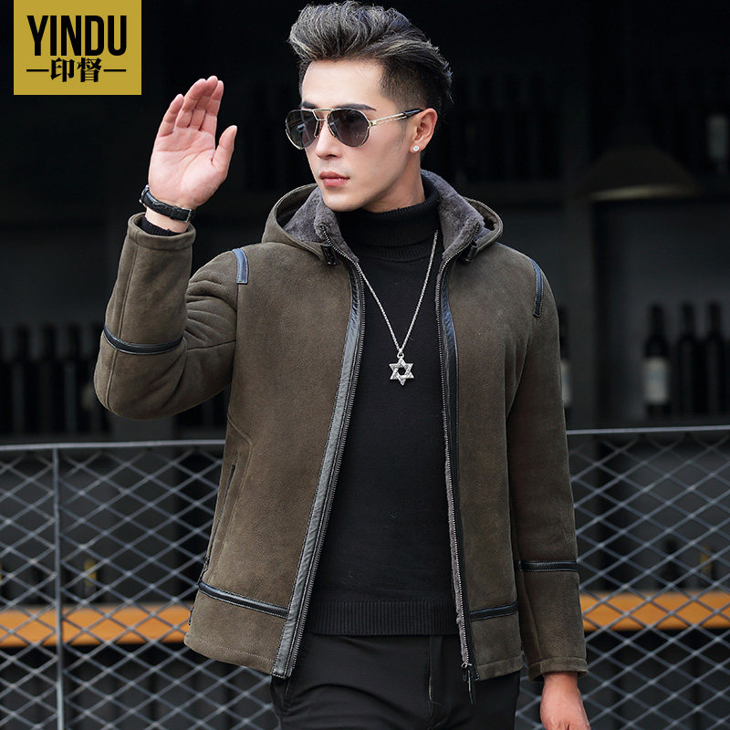 Winter dermis fur coat men's clothing Lianhood fur jacket Short-cut casual thickening original eco-fur integrated leather jacket