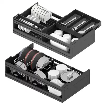 Cool too kitchen whole cabinet pull basket double stainless steel pull open door aluminum alloy seasoning drain dish pot rack