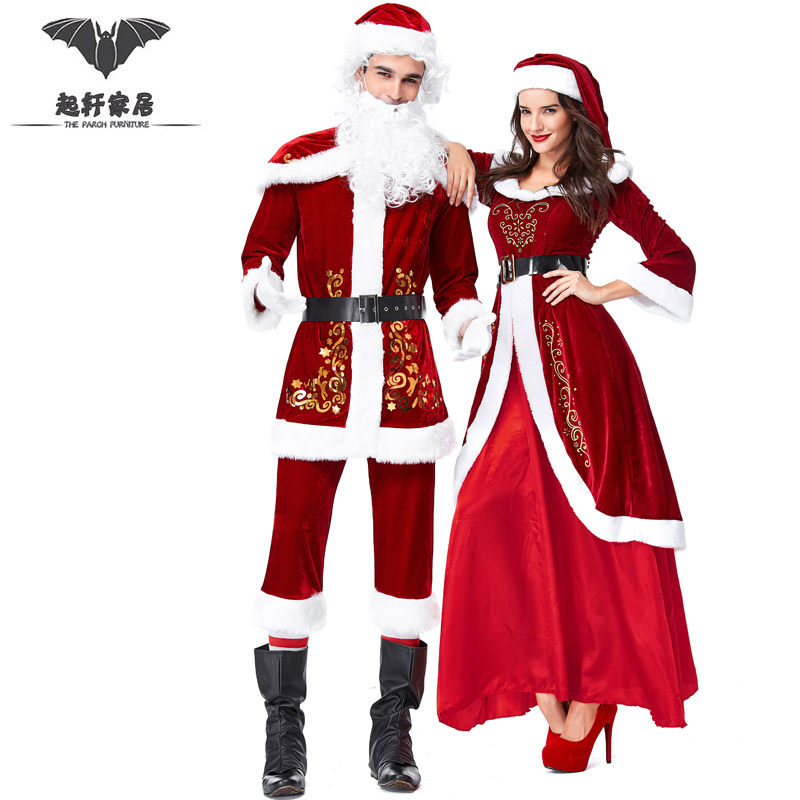 Santa Claus costume clothes men's set Christmas set skirt women adult Christmas clothes show cos dress couple