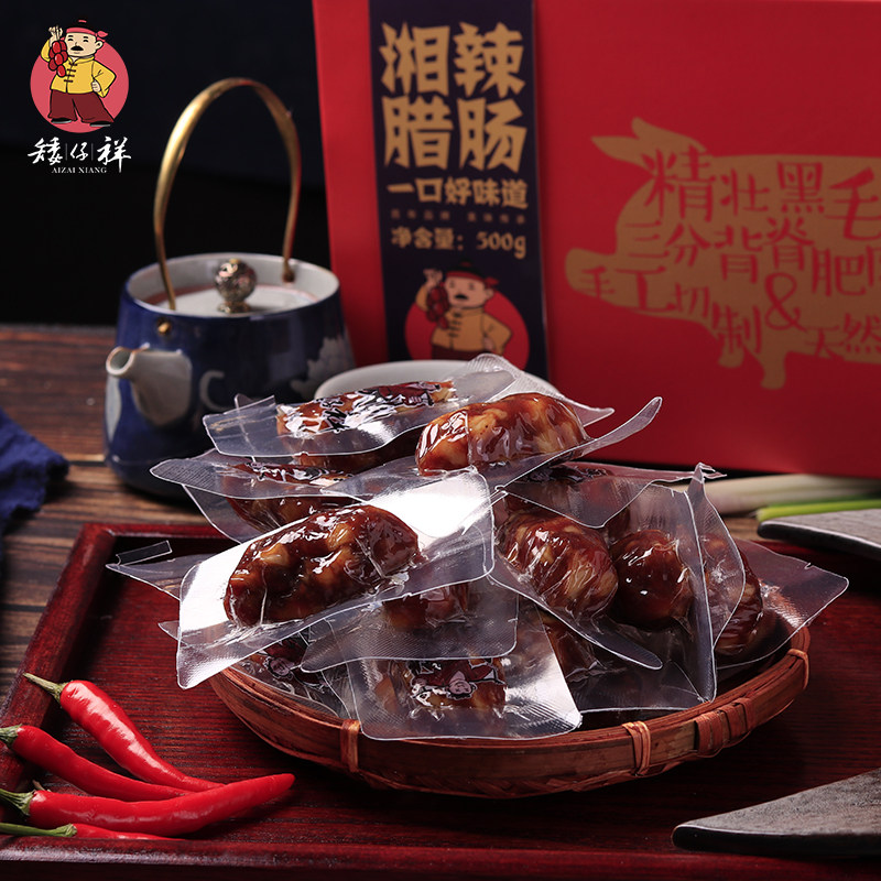 Short piggy Xiangxiang Spicy Sausage Cantonese Air-dried Farmhouse Fresh Pork Homemade Handmade Savory Spicy small sausage 500g