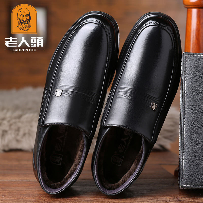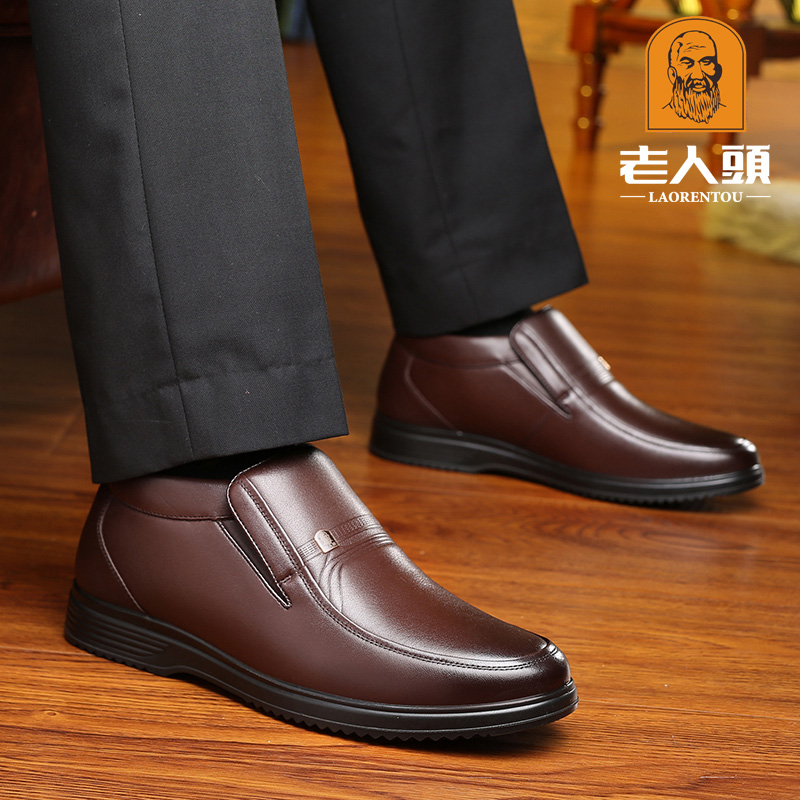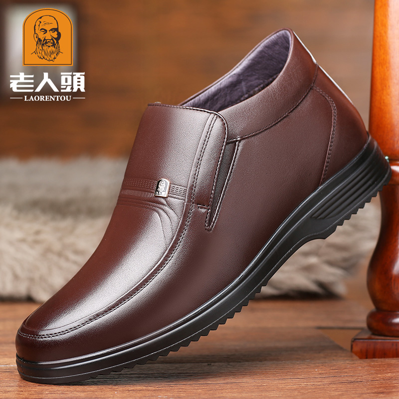 Old man's head cotton shoes 2021 Winter style Genuine Leather Warm Soft Leather High Cylinder Leather Shoes Casual Soft Bottom Middle-aged Dad Shoes