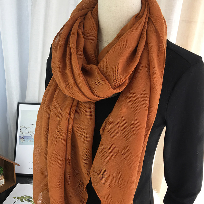 Camel scarf women's cotton hemp spring and autumn thin long version Korean version wild summer solid color literary retro sunscreen shawl scarf