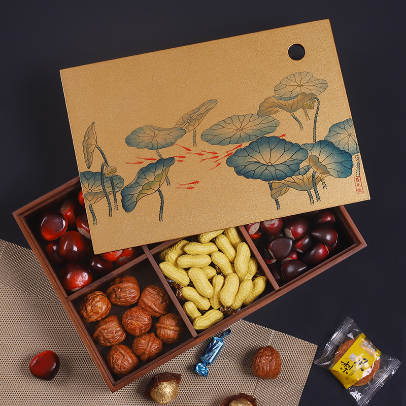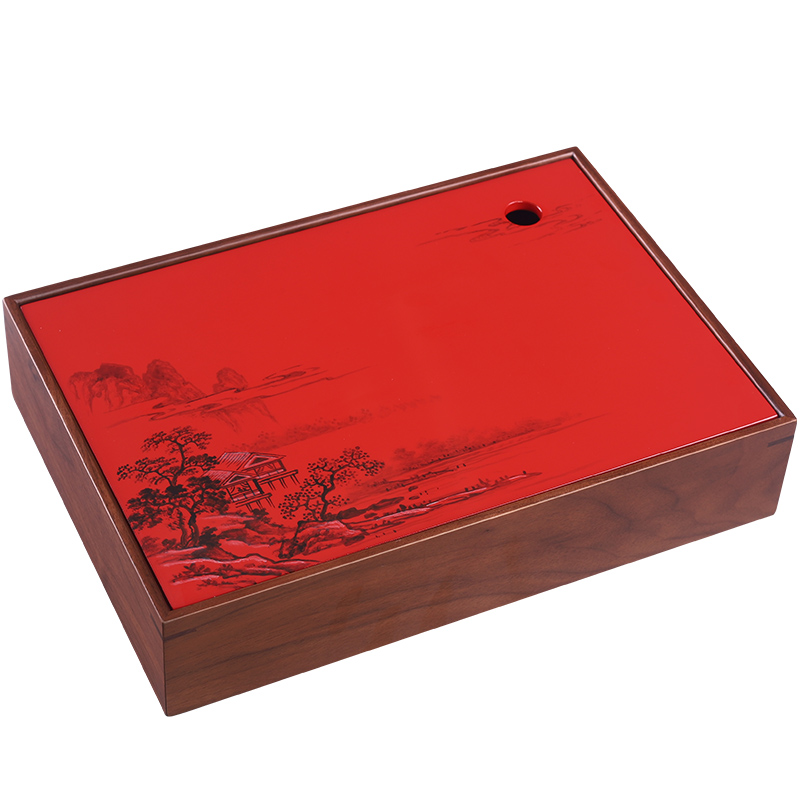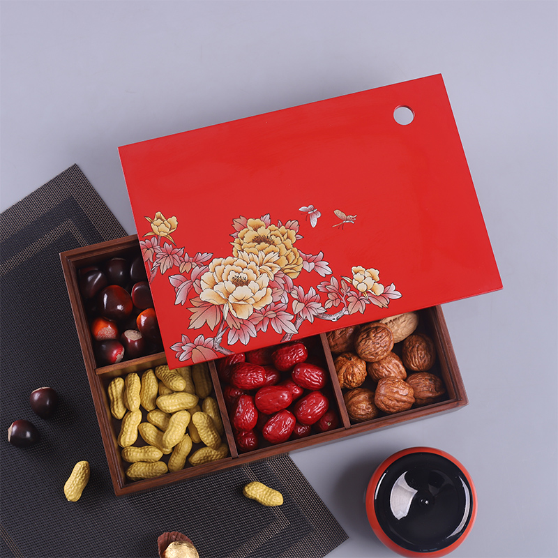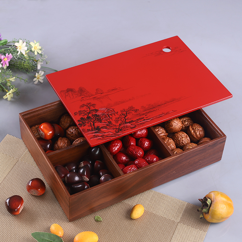 Walnuts Rectangular Fruit Case-Gold Mountain Water Walnuts Wood Square Fruit Case-Red Mountain Water Walnuts Wood Square Fruit Case-Black Fairy Crane Walnuts Wood Square Fruit Case-Red Gold Peony Walnuts Wood Square Fruit Case-Golden Lotus Year