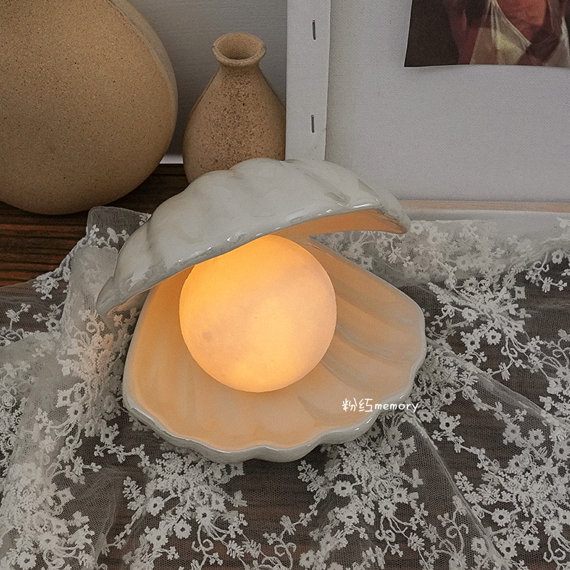 INS Day Ensemble Young Girl Hearts Dreamy Ceramic Shells Light Pearl Tabletop Decoration Small Night Light Containing Decorative Light Gifts