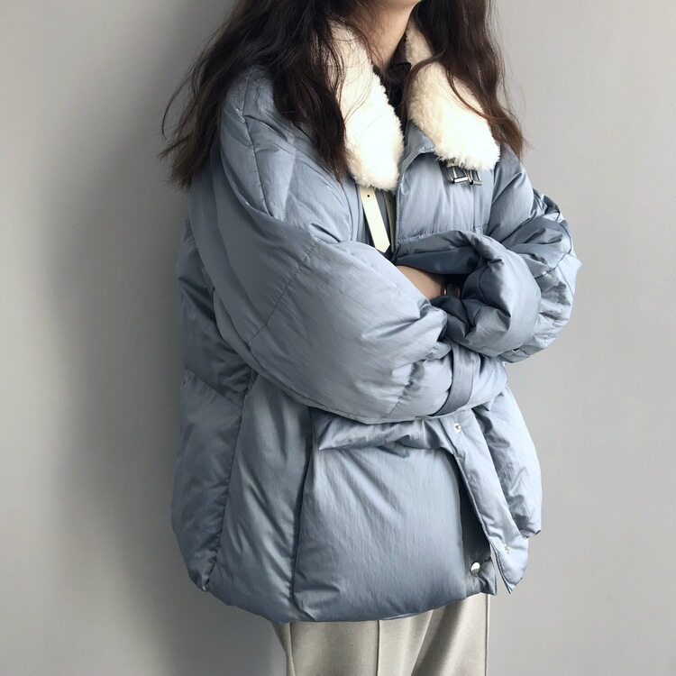Winter Korean version thickened pure colour short hair wool collar down cotton clothes Women loose 100 hitch warm bread women style cotton clothes