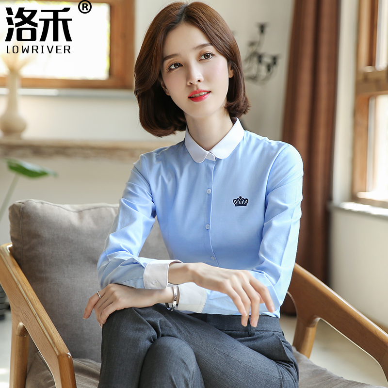 Oxford Spun Ram Color Doll Collar Professional Shirt Woman Long Sleeve White Art Embroidered 2022 Springtime Shirt Blouse