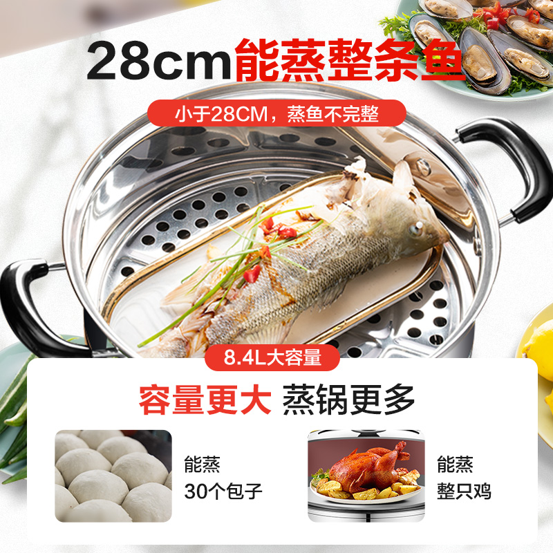 Suber steamer home 304 stainless steel steamer thick double layer 28cm large induction cooker household gas stove