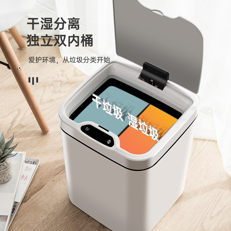 Intelligent inductive sorting garbage can kitchen large capacity dry and wet separation automatic household living room stainless steel electric