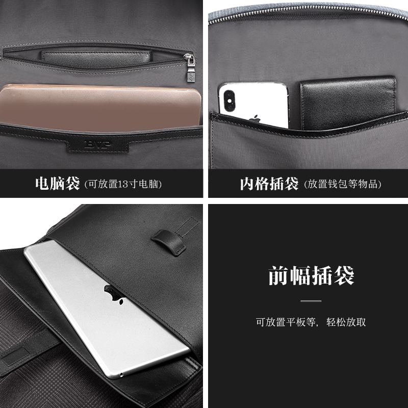 BVP Shoulder Bag Men's Double Shoulder Contractors Business Fashion Casual Genuine Leather Large Capacity Light Business Travel Computer Men's Bag