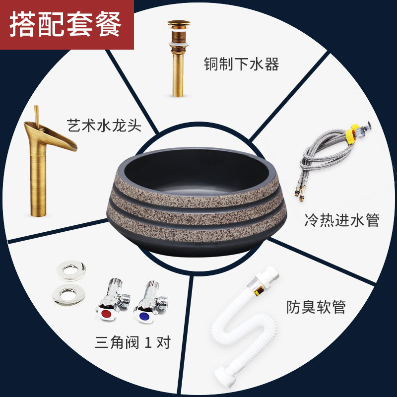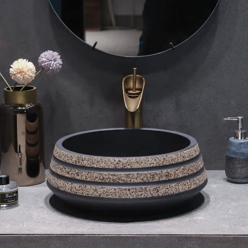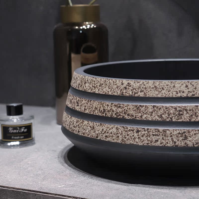 Edge Easel Terrace Basin Imitation Ancient Ceramic Engraving Art Washbasin Single-sided Basin Round Make-up Room Washbasin Home