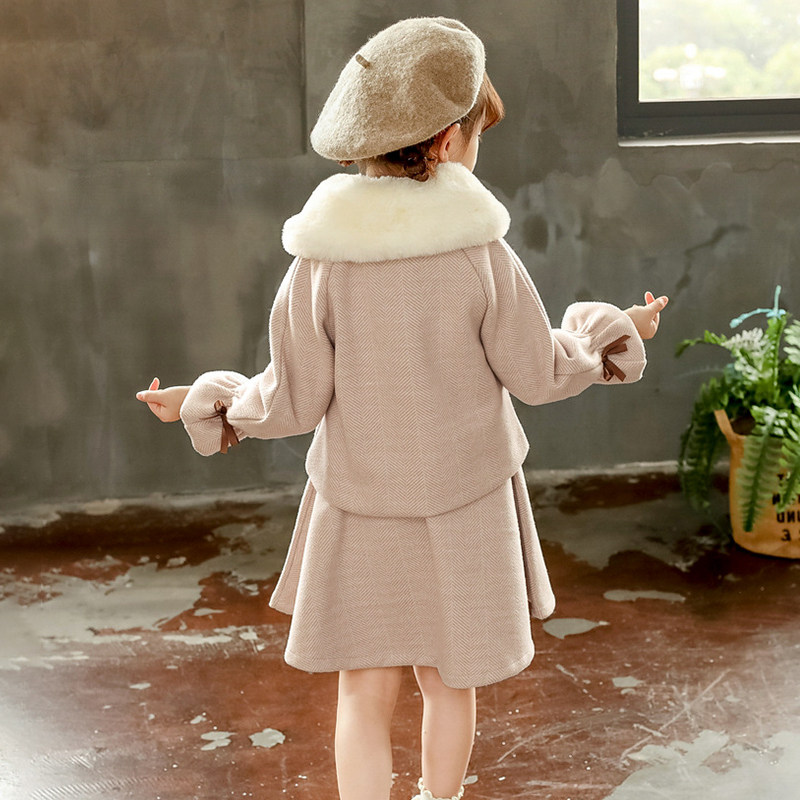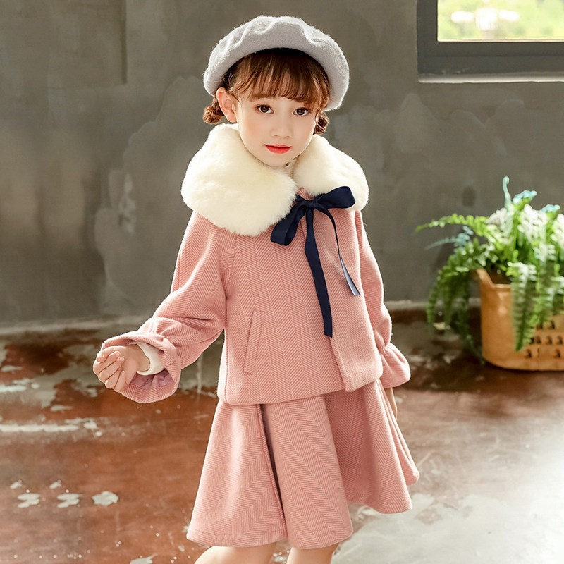 Girls quilted thickened coat autumn and winter girls woolen coat 2021 new foreign style children's woolen suit skirt