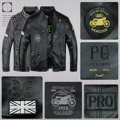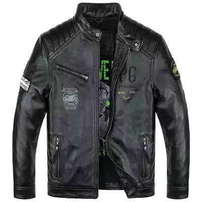 Handsome leather leather clothes young men's motorcycle models first layer cowhide leather jacket stand-up collar short old leather jacket autumn and winter
