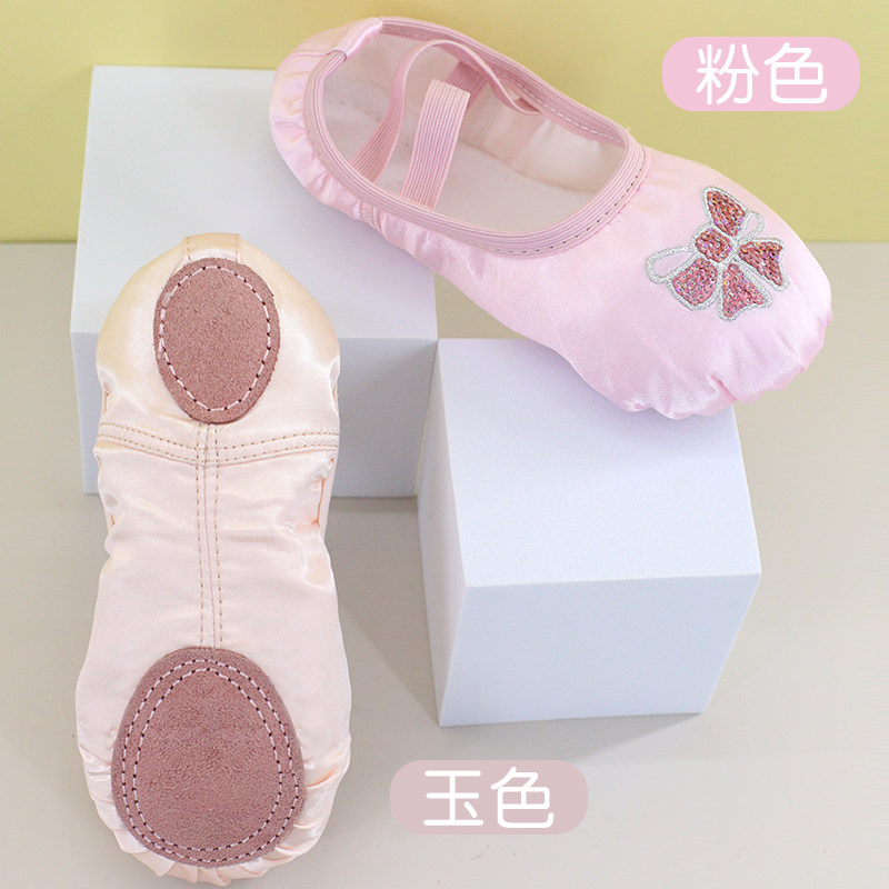 Jesilo children's dance shoes women's soft sole exercise shoes girls lace-free satin butterfly shoes ballet body dance shoes