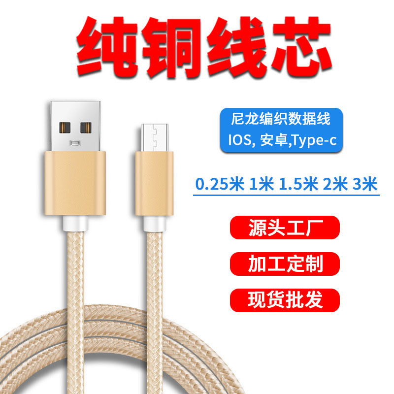 Android braided charging line type-c phone usb fast charging line 1 meter 2M for v8 apple data line
