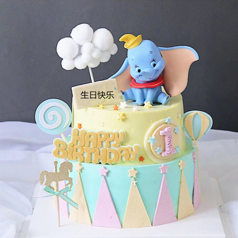 Small Flying Elephant Cake Decoration Pendulum for small children Birthday Baking Dress Netred Baby Scene Plug-in Cards