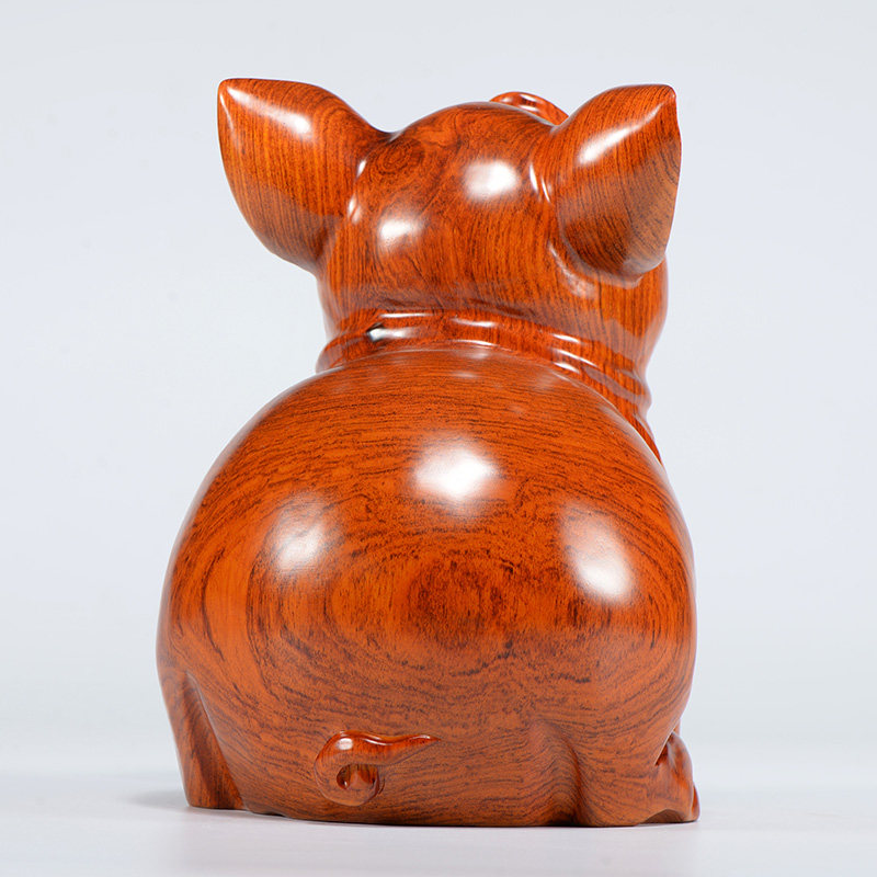 Cub square Pear wood carving pig ornaments Solid wood carving home living room wine cabinet decorations Zodiac pig craft gift ornaments