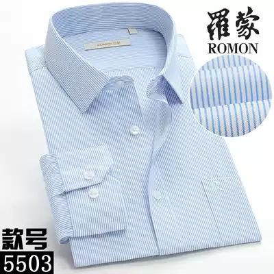 Romon spring men's striped shirt Free ironing middle-aged, middle-aged and elderly men's business casual cotton shirt Dad outfit