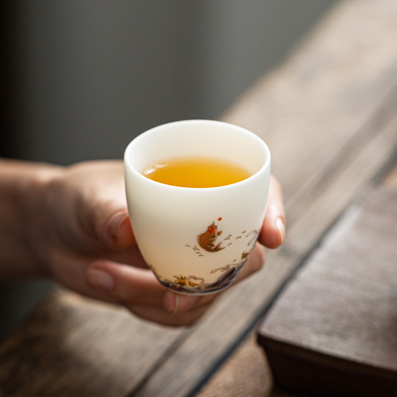 Kung fu cup cup owner Kung fu cup tea cup drink cup of lamb fat gold lap gift package