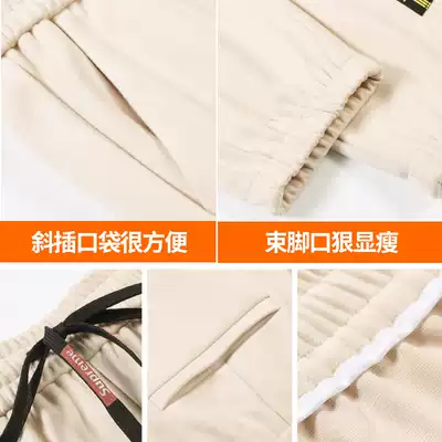 Beige bunched feet casual pants women loose light color 2021 Spring and Autumn New High waist thin spring autumn lob Harun