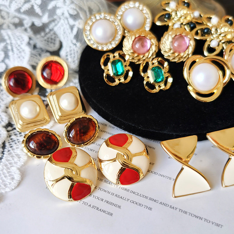 vintage overseas custom retro vintage modern retro 100 lap elegant enamel pearl anti-allergy ear clip