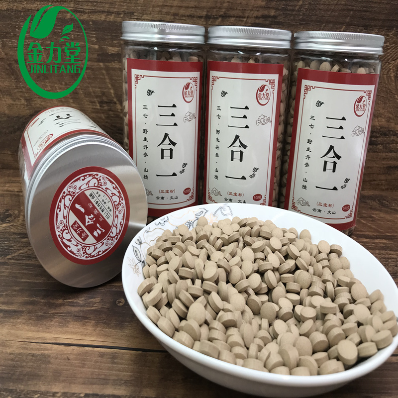 Yunnan Wenshan Sanqi Danshen Hawthorn powder three-in-one tablet 500g three-in-one powder tablet Sanbao tablet