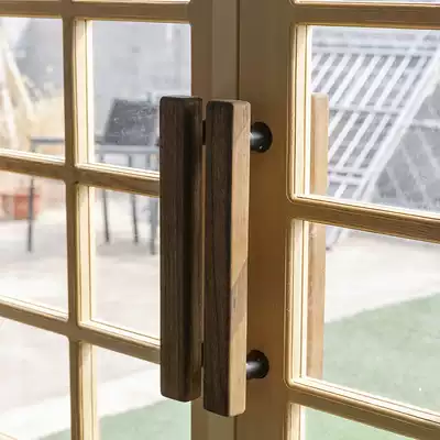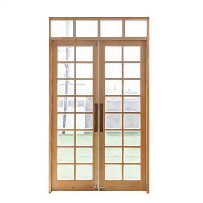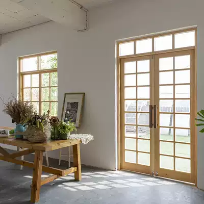 Solid wood log custom double-fan folio pine glass wooden door Dessert coffee shop entrance door Window glass door