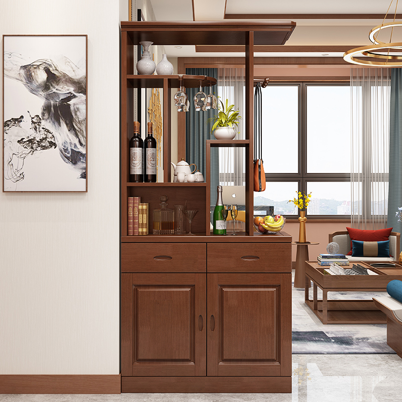 New Chinese style 0.9 meters solid wood entry door porch partition cabinet simple modern double-sided screen wine cabinet shoe cabinet hall cabinet