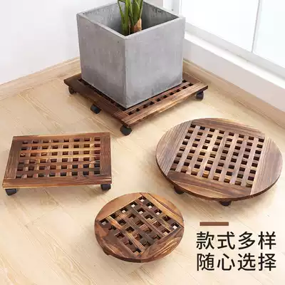 Movable flowerpot tray round with roller solid wooden base universal wheel rectangular anticorrosive wood potted receptacle