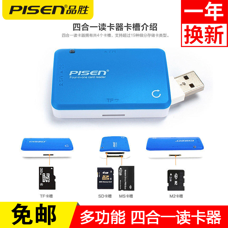 Pinsheng four-in-one multi-function card reader 4-in-1 TF M2 SD MS All-in-one compact MMC card reader Card reader m2 Canon Nikon plug-in card CF monocular Sony micro single