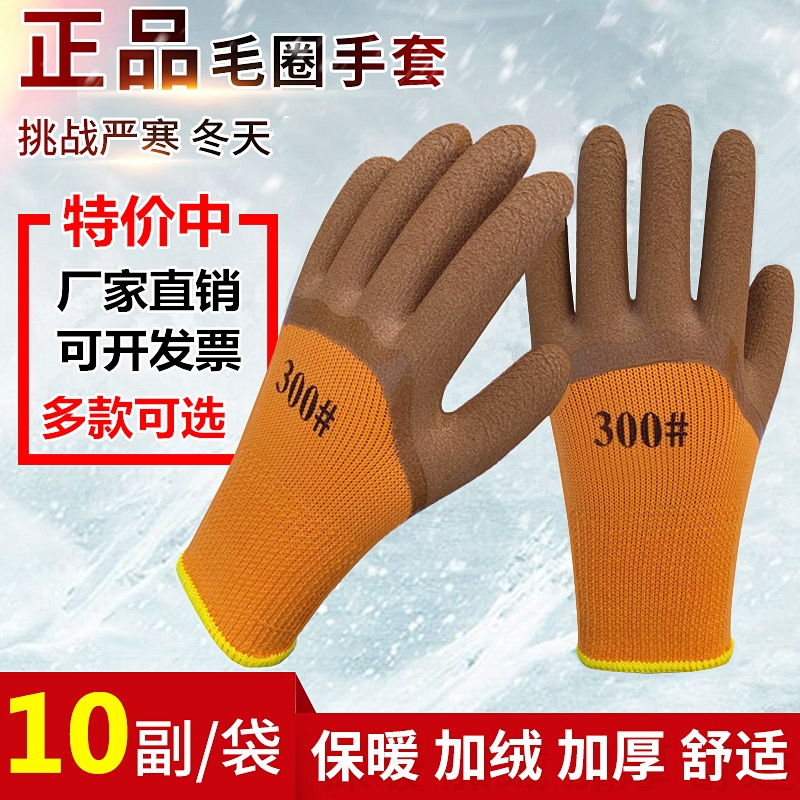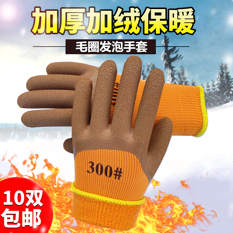 Hair ring foaming thickened with velvety winter Lauprotect gloves hanging glue-resistant anti-slip anti-cold and warm working protection