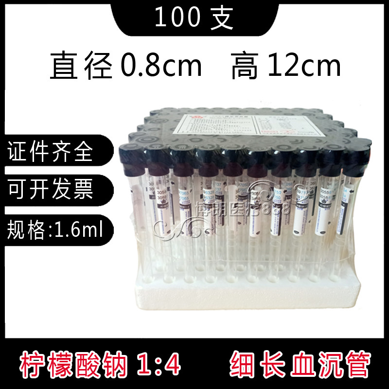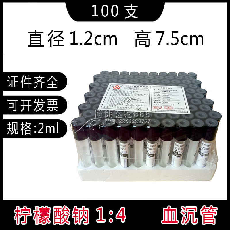 Blood collection tube medical disposable vacuum negative pressure sodium citrate sodium citrate 1:4 2ml black cap erythrocyte sedimentation tube