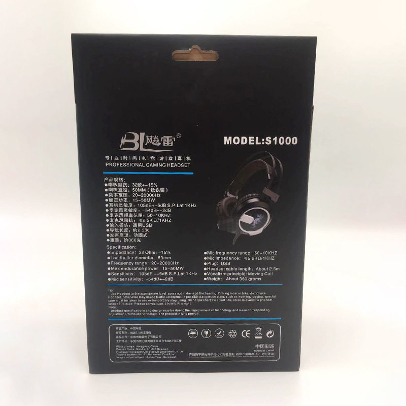 The Thunder S1000 Seven colorful luminous headphones Internet café headphones Anti-violent headsets Low-accent game Music earbuds