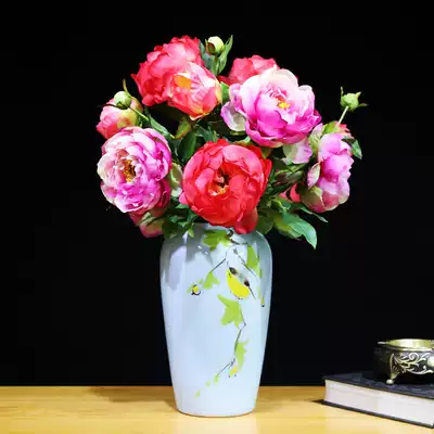 High-end peony flower fake flower big simulation flower silk flower flower single living room floor decoration decoration for Buddha flower arrangement