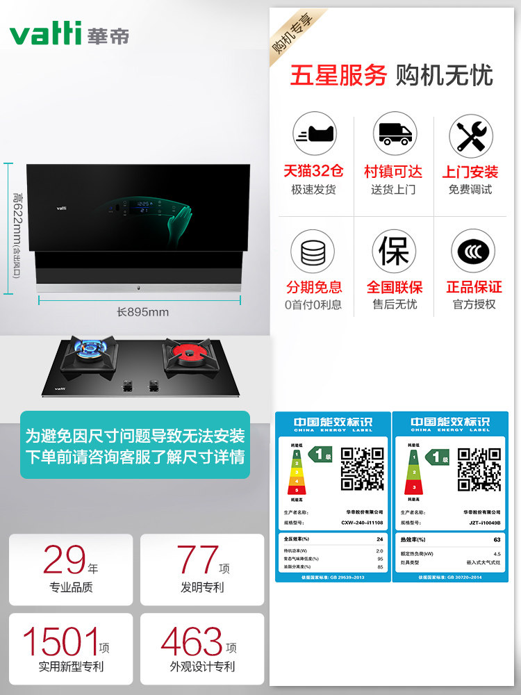 Vantage range hood gas stove package i11108 i10049B Smoke machine set side suction automatic cleaning
