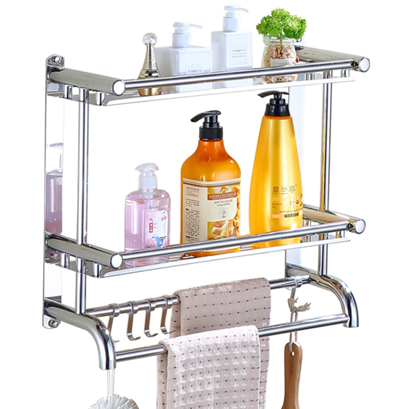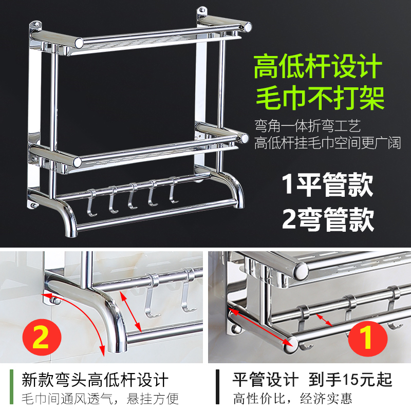 Thickened bathroom towel rack three-layer hole-free stainless steel toilet shelf toilet toilet double wall hanging