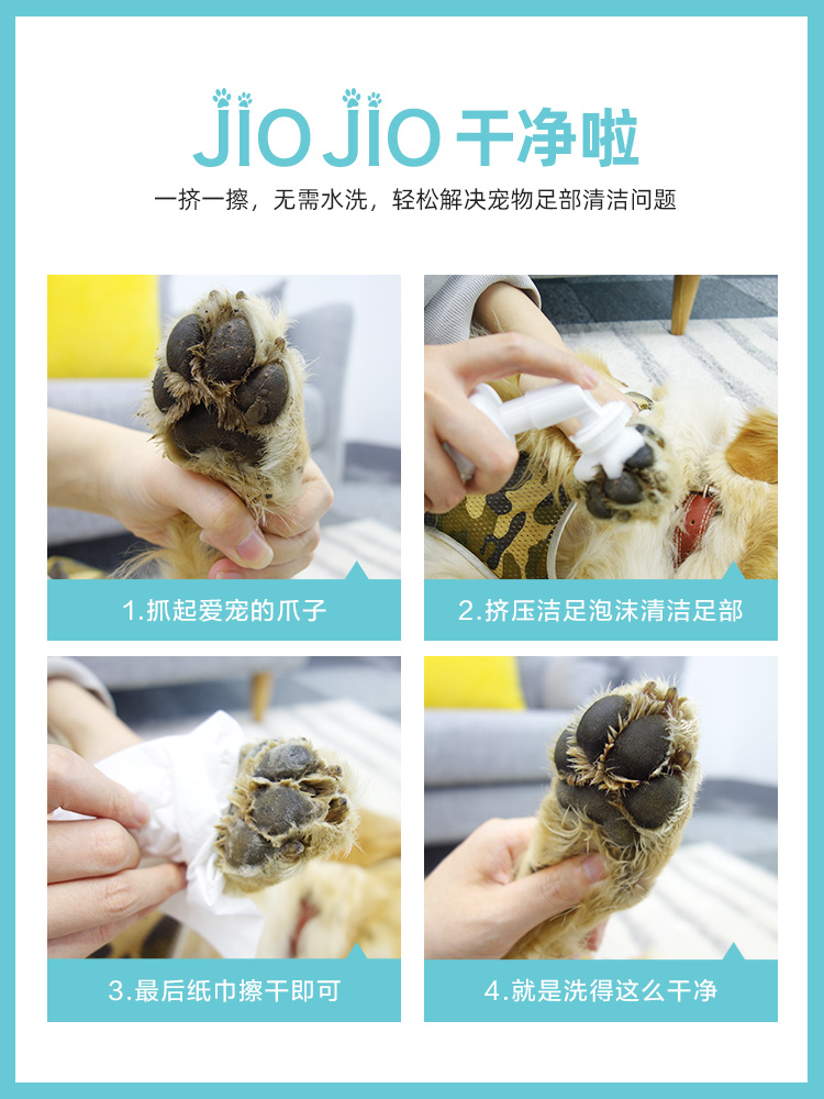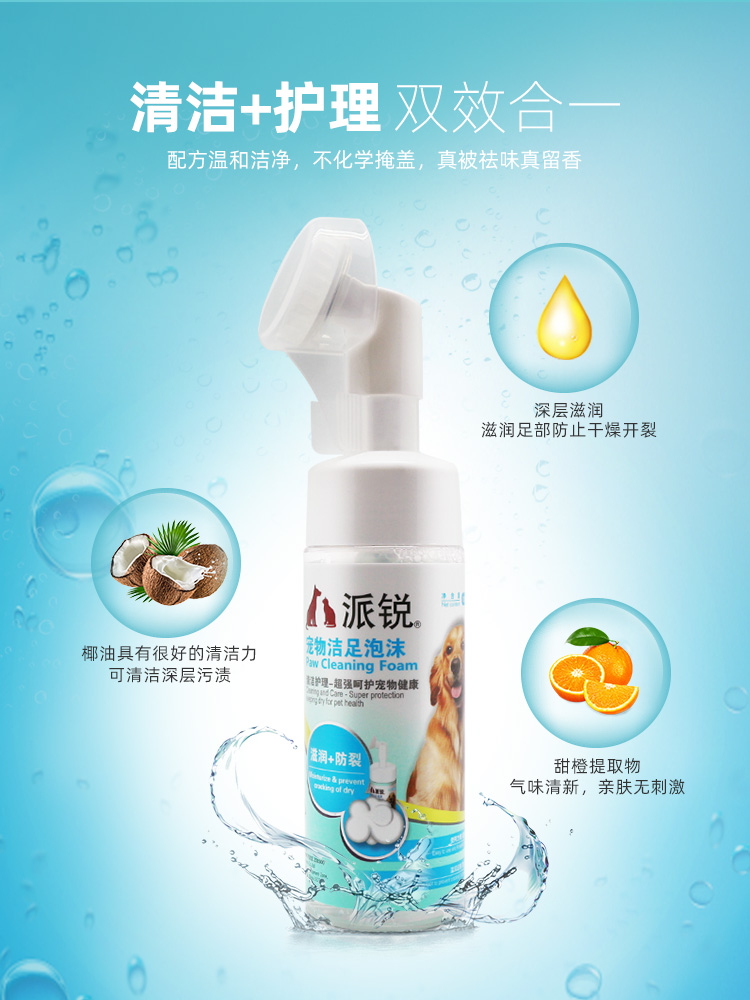 Pai Rui foot cleaning foam dog foot washing foam pet wash-free cleaning moisturizing anti-dry cracking cats and dogs universal a total of three bottles