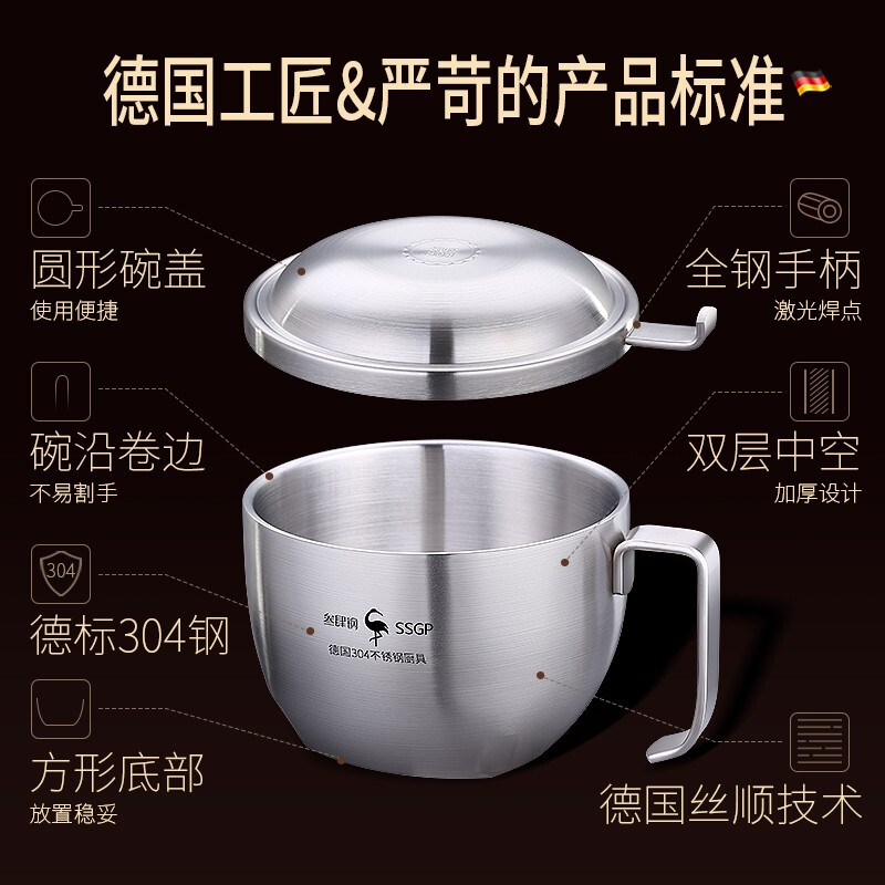 Bubble Noodles Bowl with lid Stainless Steel Insulation Lunch Box Canteen Snack Cup for work Students Dormitory Lunches Noodle Soup Bowl