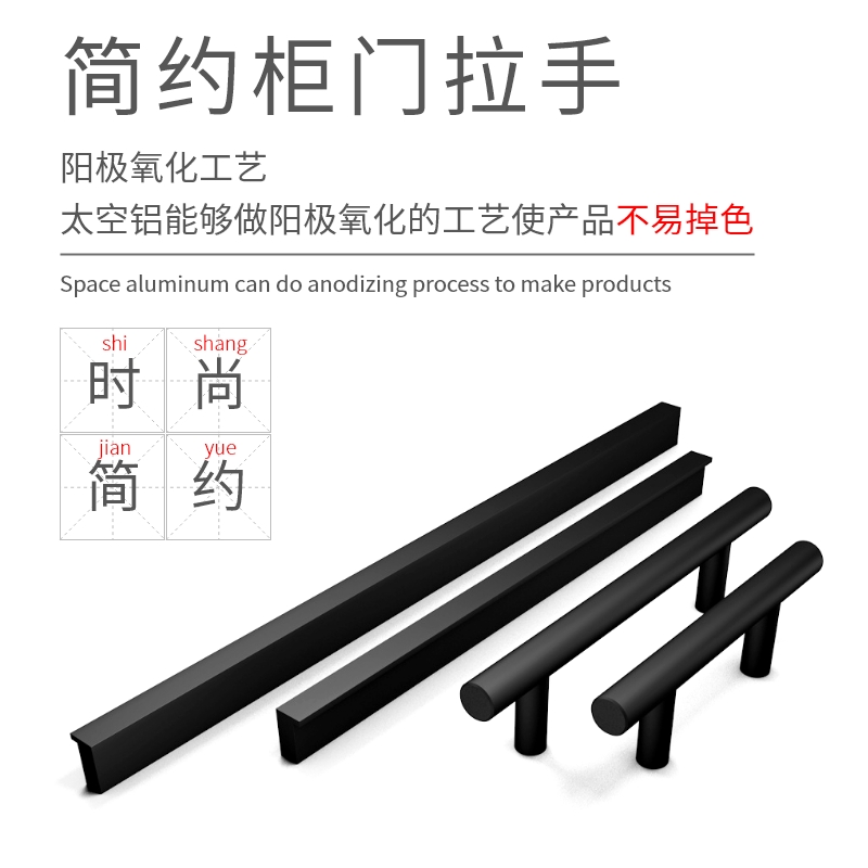 Nordic handle black modern minimalist door handle long handle solid wood matte black handle cabinet door cabinet door light luxury