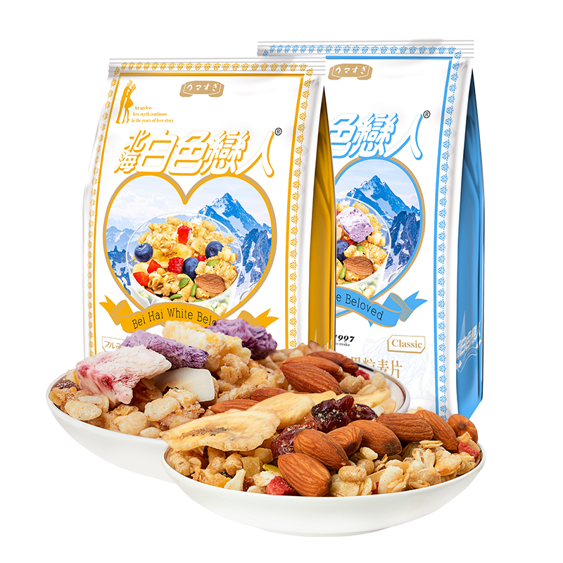 North Sea white lovers yoghurt fruit nut fruit oatmeal Wheat Flakes Rinderless Drink Ready-to-eat Nutritious Breakfast Décor 150g