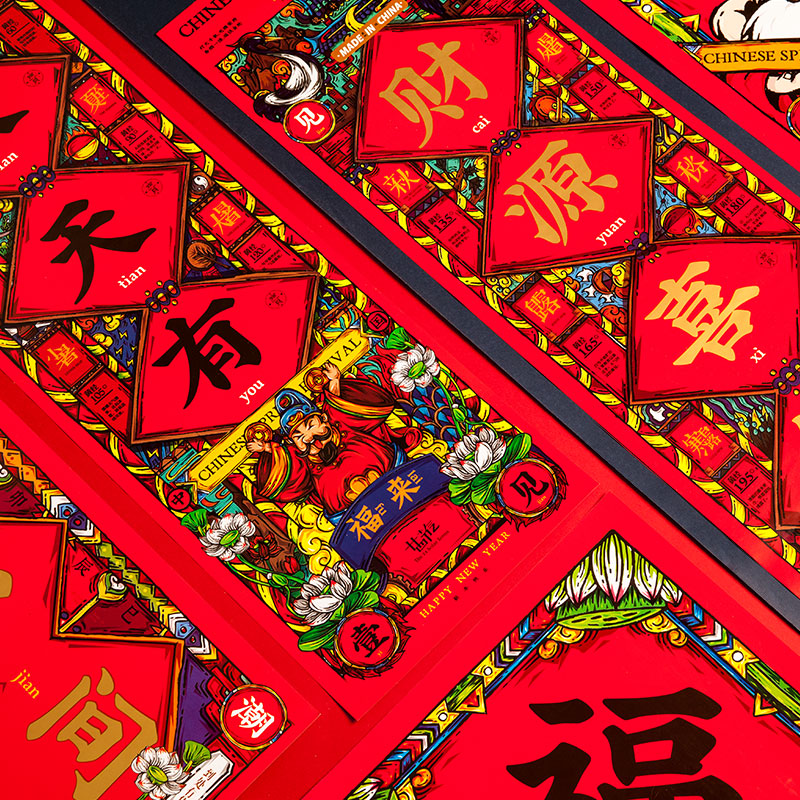Fu Man Man World-Printed Gold Fu Man Man World-Printed Black Chinese New Year Festival Huatang