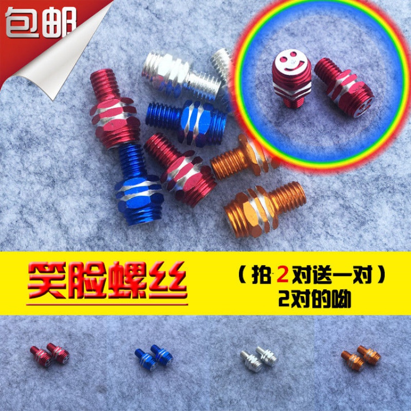 Smiley face screw blue pair of smiley face screw red pair of smiley face screw silver pair with smiley face screw black pair with a smiley face screw gold pair