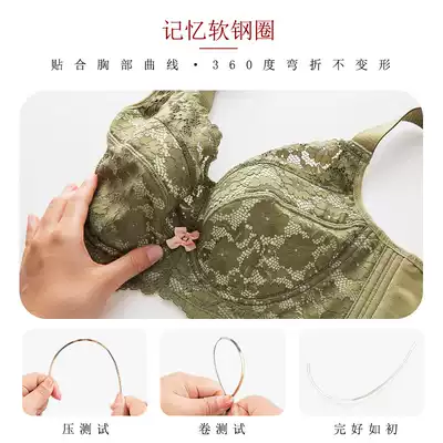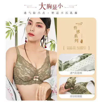 Moonlight big size ultra-thin bra soft steel ring fat mm lace collection of auxiliary milk full cup anti-sagging Big Chest show small underwear