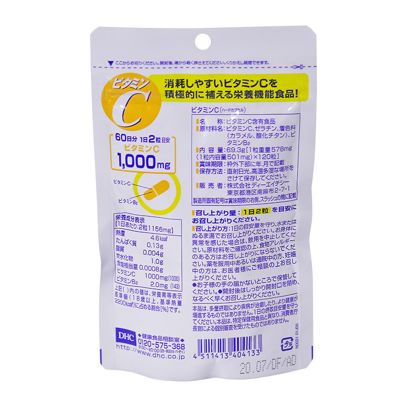 Japan DHC vitamin C capsule 120 tablets 1 pack 3 times purchase vitamin C tablets beauty whitening pills freckle removal VC =